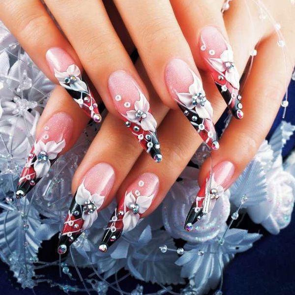3d Flowers Over Clear Tips Nail Design Nails Nail Designs