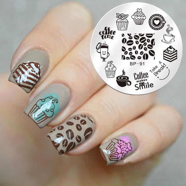 1 Pc Born Pretty Round 5 5cm Nail Art Stamp Template Dessert Coffee