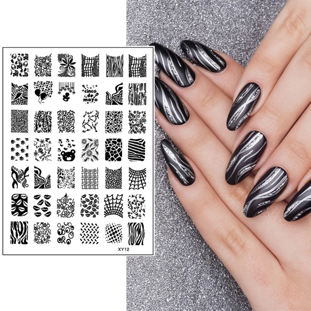 1 Pc New Nail Art Stamping Stripe Grid Cobweb Lip Vine Designs Nail