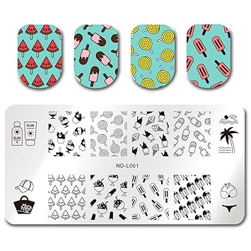 Nicole Diary Nail Stamping Template Summer Holiday Ice Cream Coconut Tree Lollipop Image Cute