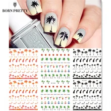2pcs Diy Nails Art Sticker Colorful Summer Oceans Flowers Coconut