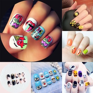 Details About 24pcs False Full Cover Pro Salon Cartoon Comic Nail Art Tips Cat Bear Halloween