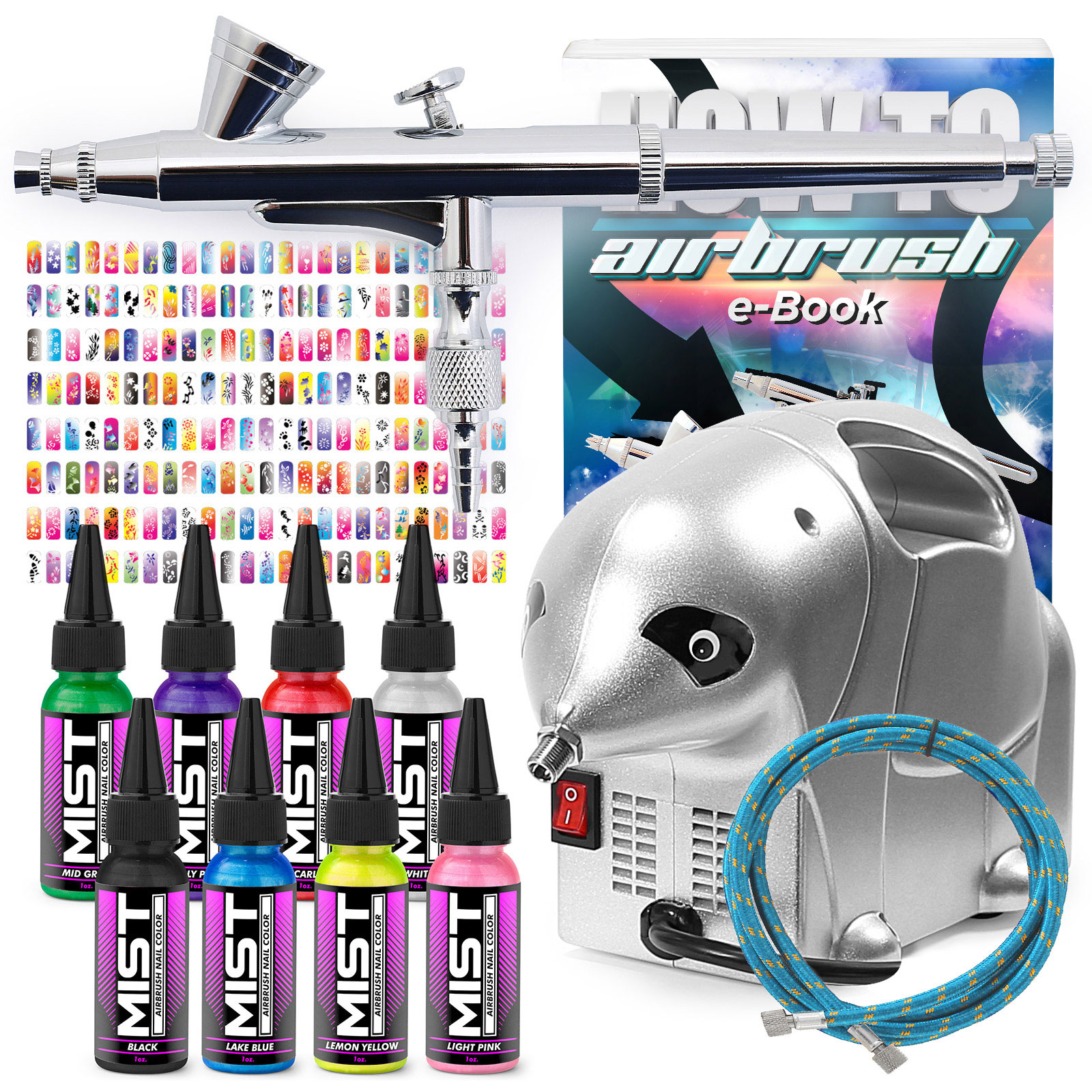 Complete Nail Art Airbrush Kit 8 Colors 240 Stencils Set With
