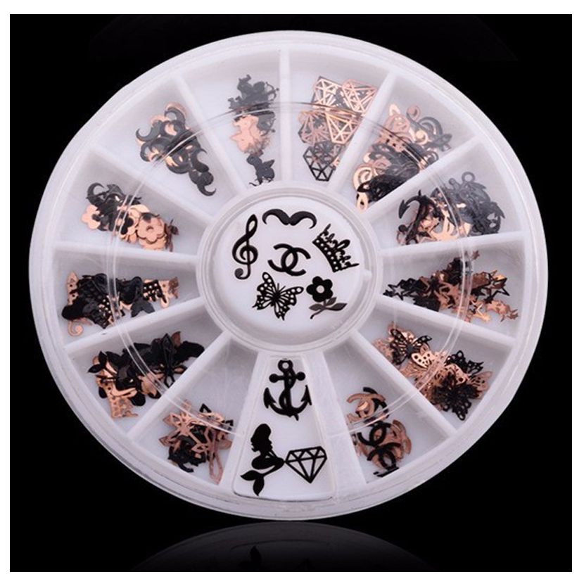 Computer Chip Nail Rhinestones Metal Nail Art Decoration Set 3d Jewelry Diy Black Copper Design For Gel Polish