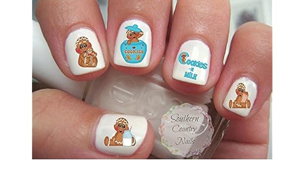 Amazon Com Gingerbread Boy Cookie And Milk Nail Art Decals Beauty