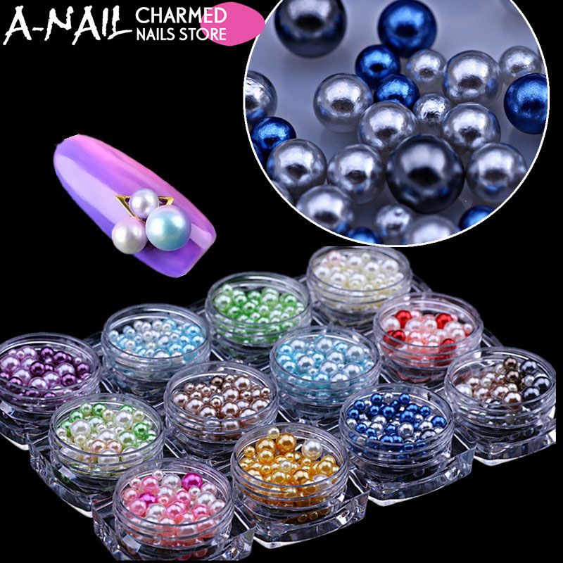 1 Bottle Lot 3d Nail Art Decoration Mix Size Imitation Pearl Round