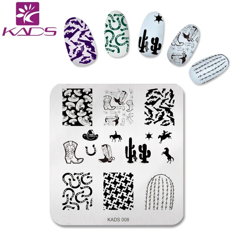 Kads New Creative Cactus Boots Gun Design Nail Art Stencil Nail
