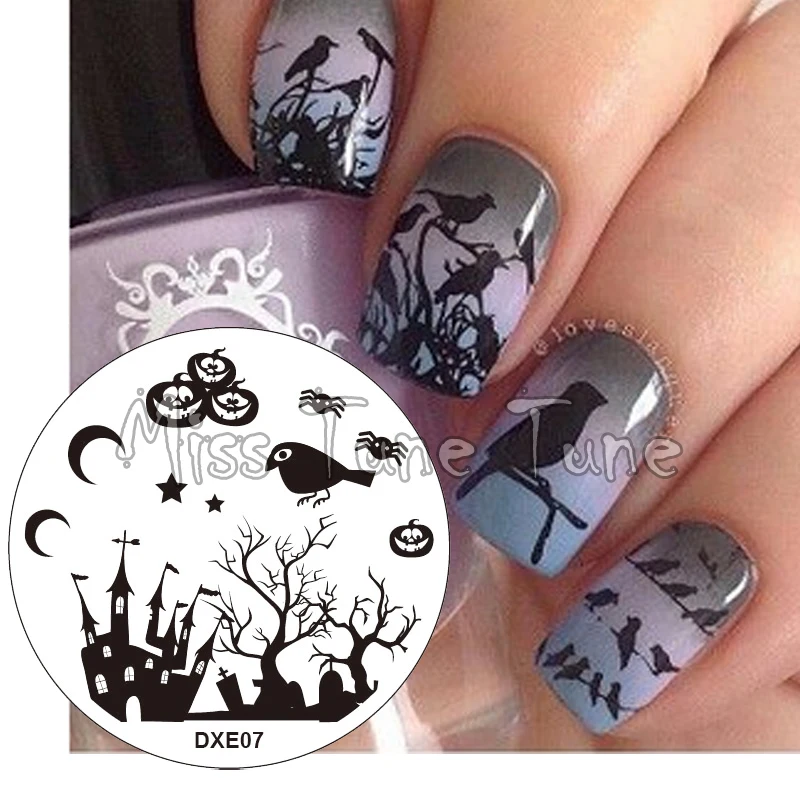 Us 0 65 New Halloween Stamping Plate Black Crows Dark Forest Pumpkins Spider Design Nail Art Stamp Template Image Transfer Tool In Nail Art