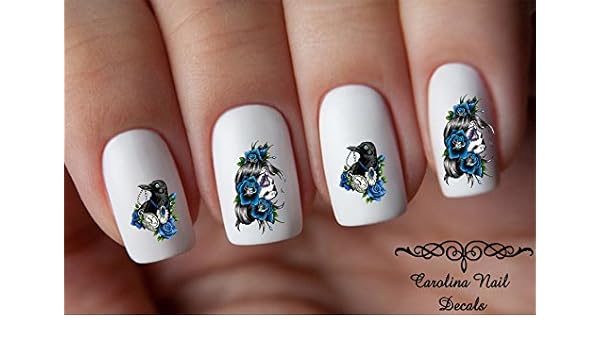 Amazon Com Sugar Skull Crow Blue Roses Nail Art Decals Beauty