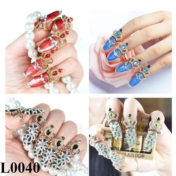 New Arrival Wholesale Fashion Crown Crystal Finger Nail Art Ring