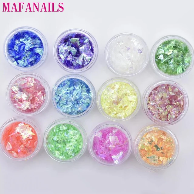 12pc Set Fishscale Shell Nail Art Crushed Shell Seashell Set Gel
