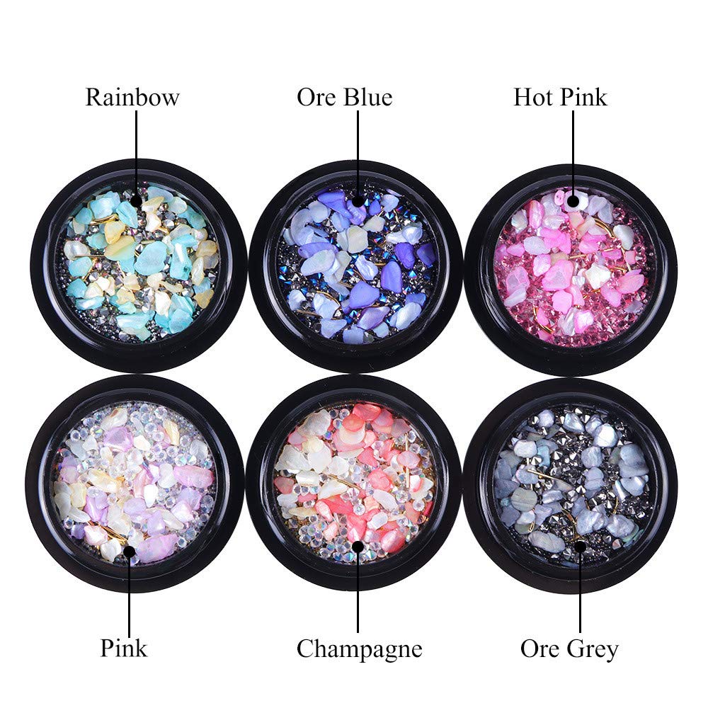 Amazon Com Ktyssp 6 Box Nail Art Crushed Shell Crystals Beads Gem