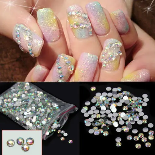 1440pcs Shiny Crystal Nail Rhinestone Ab Silver Flat Back Stone 3d