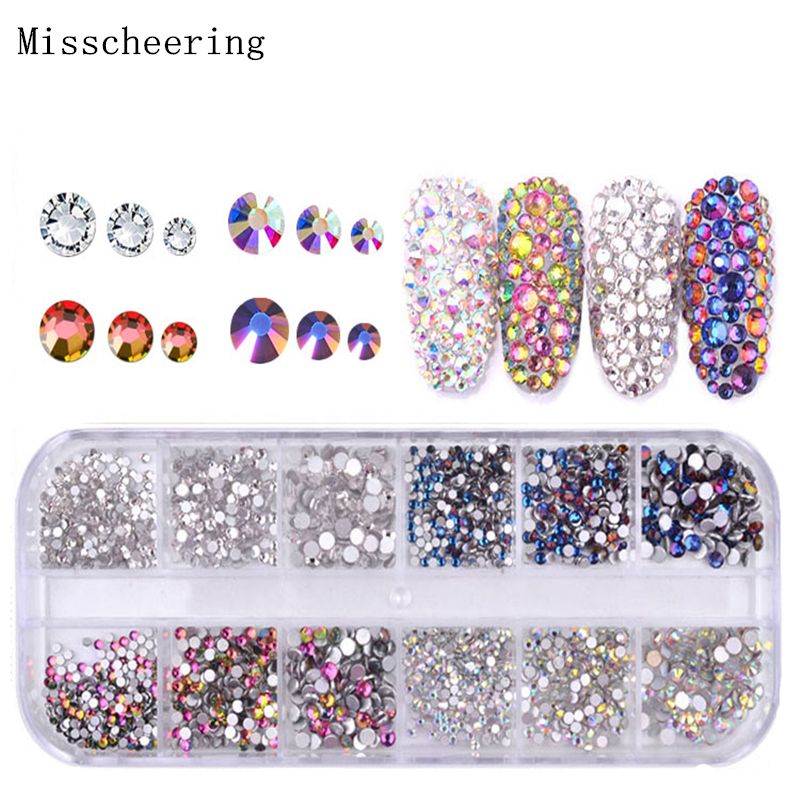 1440pcs Set Ab Nail Rhinestones Flat Back Crystal Nail Glitter Non