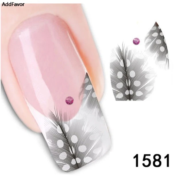 Addfavor 3pcs Black Feather Nail Art Sticker Water Transfer Nail