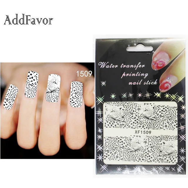 Addfavor 3pcs Black White Leopard Skin Nail Art Sticker Water