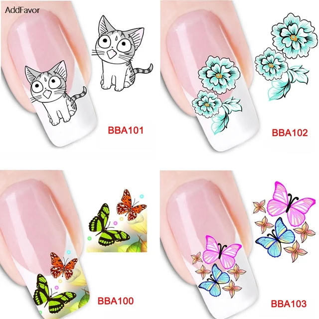 Addfavor 8 Sheets Custom Nail Art Stickers Decals Butterfly Flower