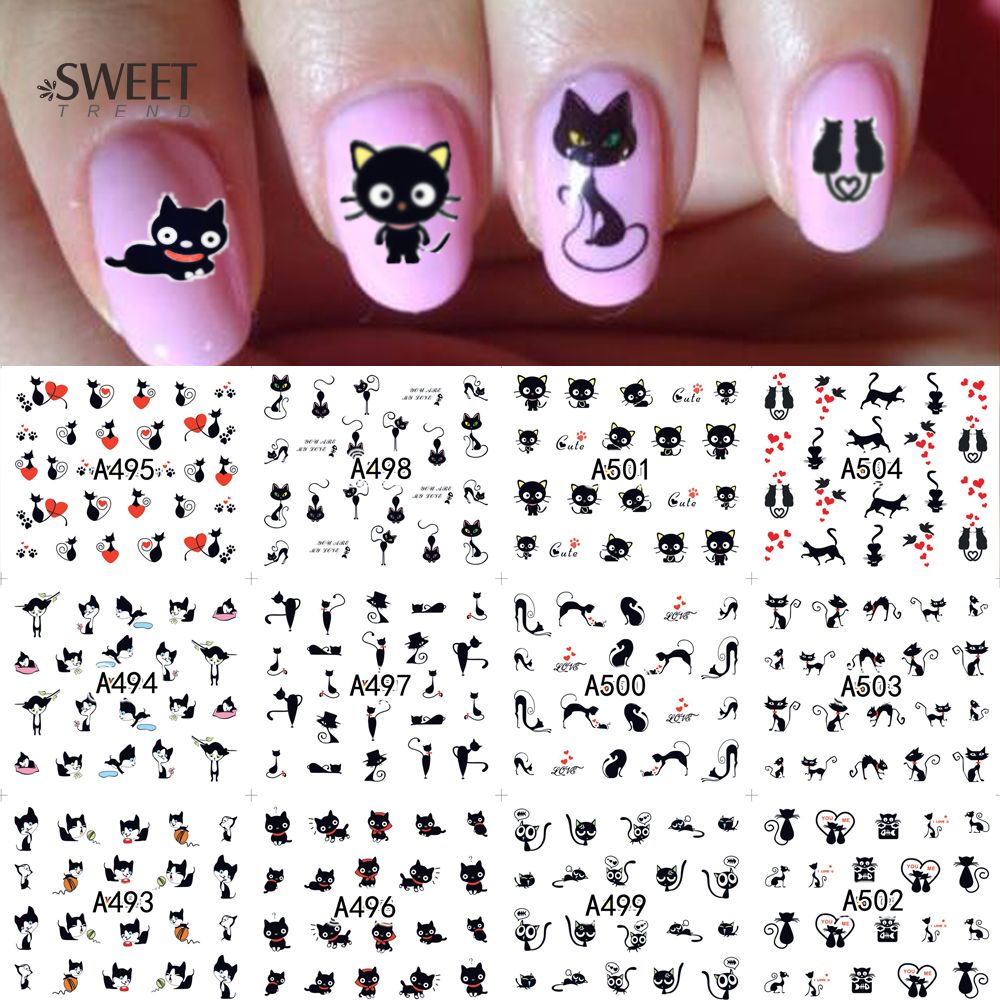 12 Designs In 1 Cute Cat Pattern Watermark Designs Nail Art Stickers