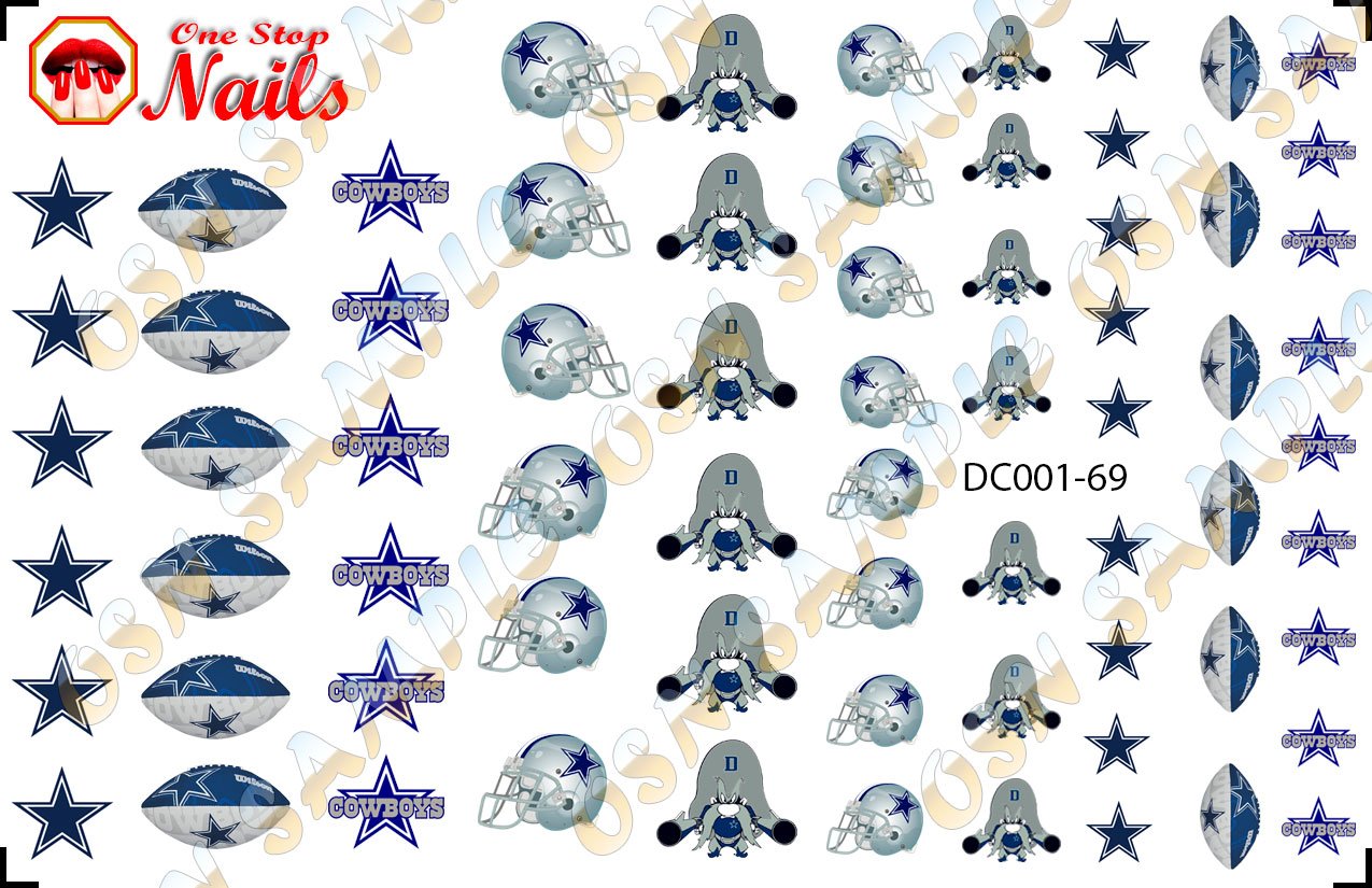 Dallas cowboys football waterslide nail art decals salon quality. Top quality bright and colorful set of 42 waterslide nail decals with dallas cowboys mickey art and logo.