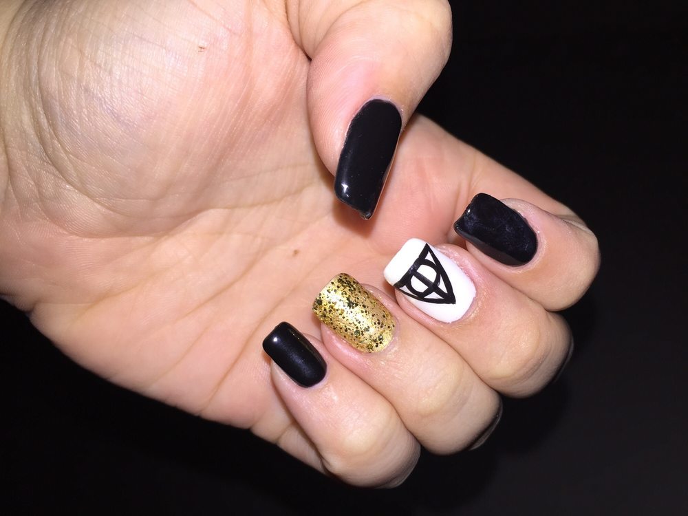 My Awesome Deathly Hallows Nails With A Little Bit Of Gold Sparkle
