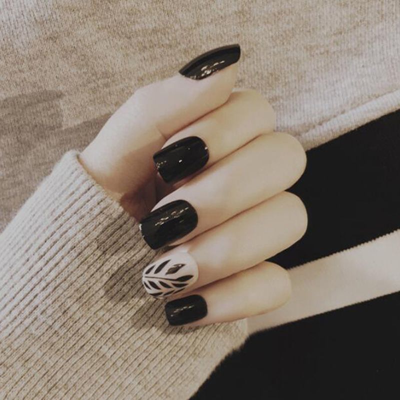Black Leaves Nail Water Sticker Leaf Design Slider Nail Art Decal