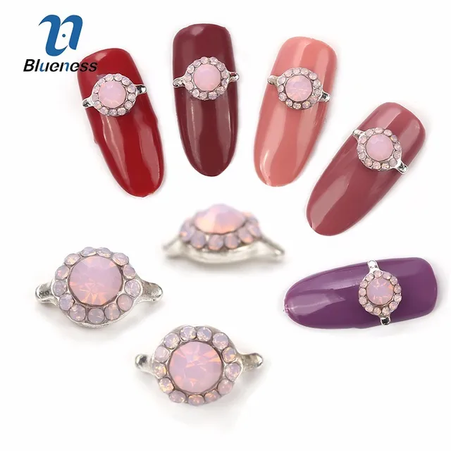Blueness 10pcs Pink Color Nail Rhinestone Diamond Ring Design Mini