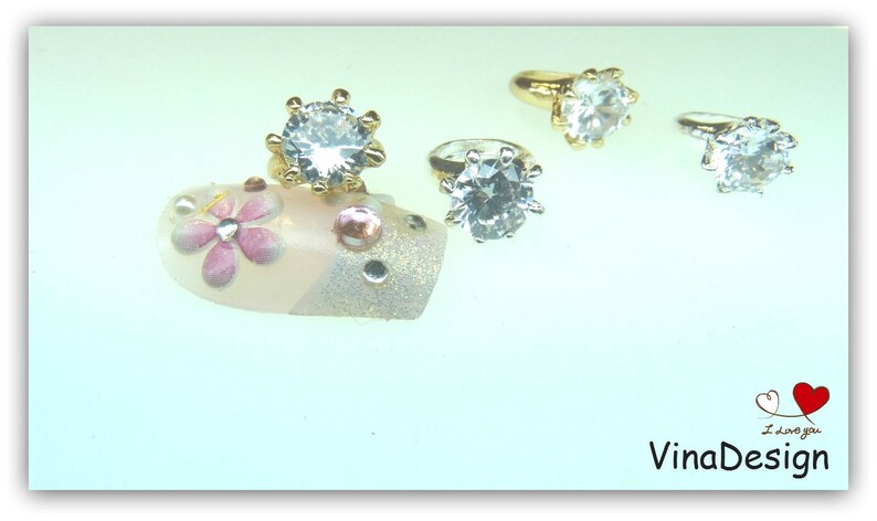 3d Nail Art Diamond Ring Diamond 3d Silver Zircon Ring Nail Etsy
