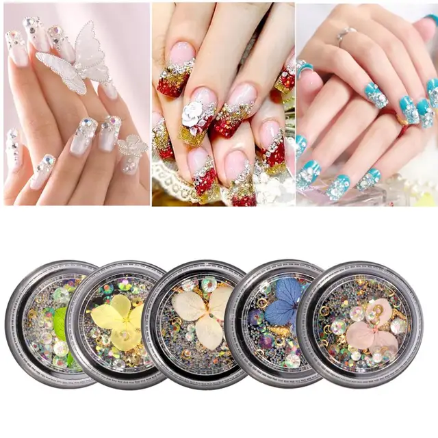 1 Box Nail Art Glitter Rhinestones Dry Flower Metal Nail Polish