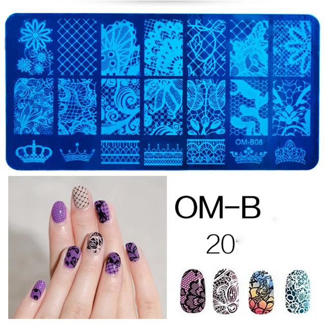 Us 1 78 20 Patterns Diy Nail Art Tools Nail Printing Template Diy Blue Film Bc Lace Nail Polish Rectangular Printing Plate Xz96 In Nail Art