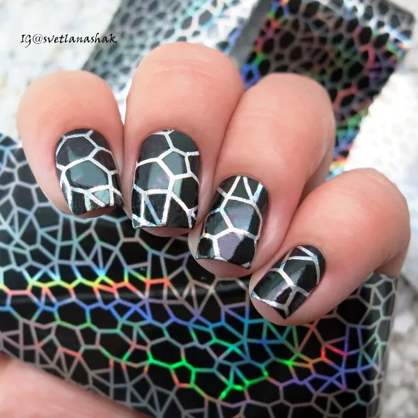 1pc Holographic Nail Foils Black Spider Web Nail Art Transfer