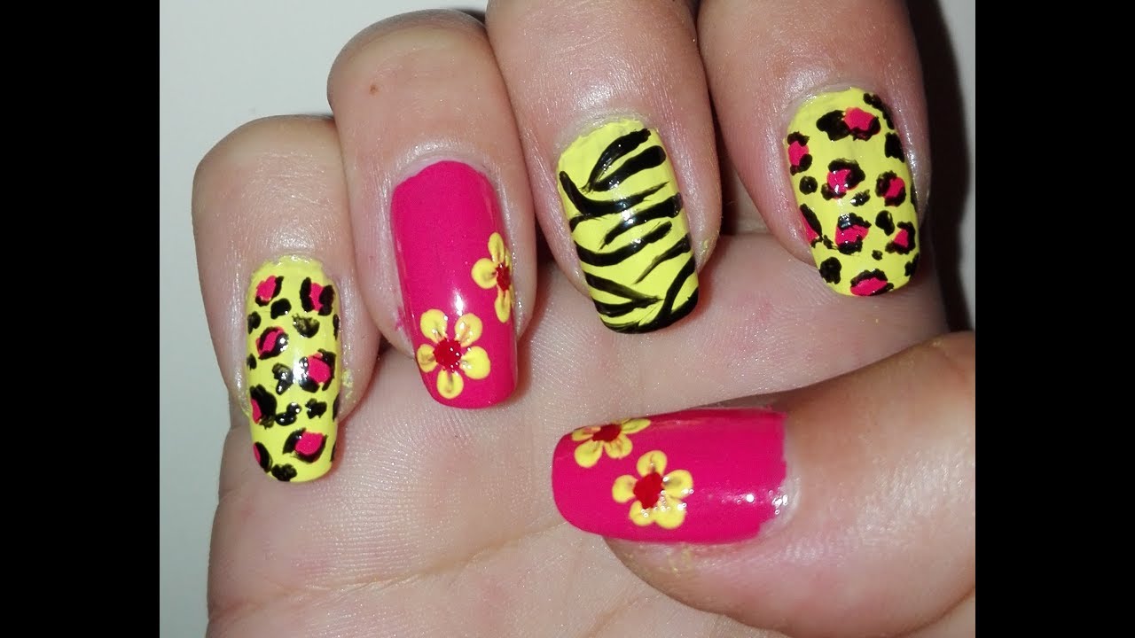 Diy Summer Nail Art Tutorial No Tools Animal Print And Flowers Nail