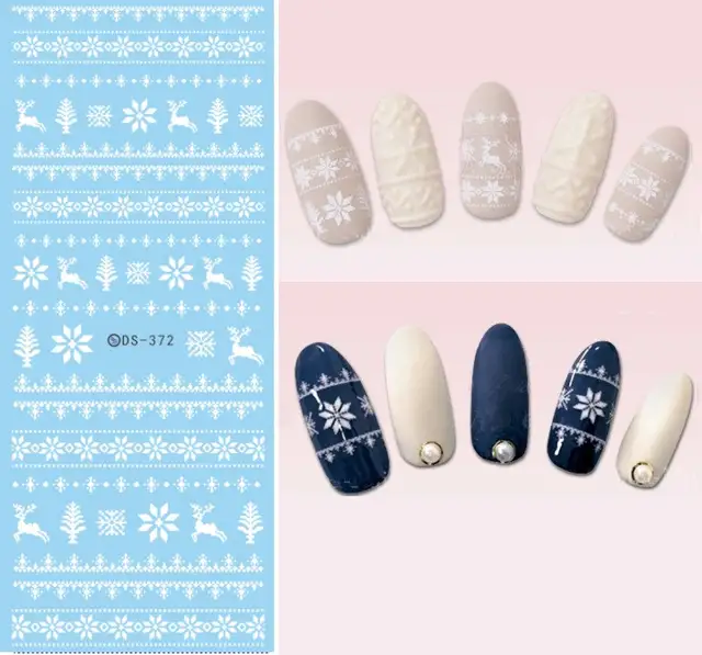 Ds372 Diy Design Water Transfer Nails Art Sticker White Reindeer