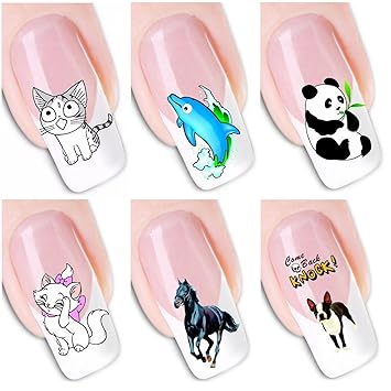 Amazon Com 6pcs Nail Art Stickers With Dog Horse Dolphin Panda