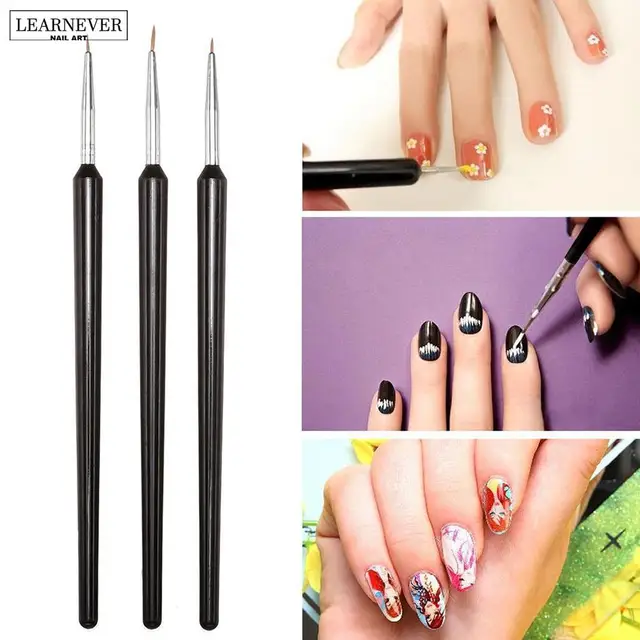 3 Pcs Nail Art Brush Dotting Pen Set Black Acrylic French Nail Art
