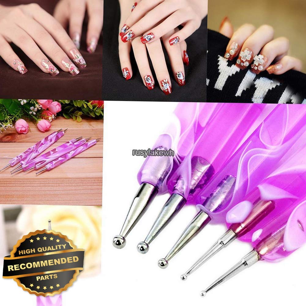 Dotting 5 X 2 Way Marbleizing Dotting Pen Set For Nail Art Manicure