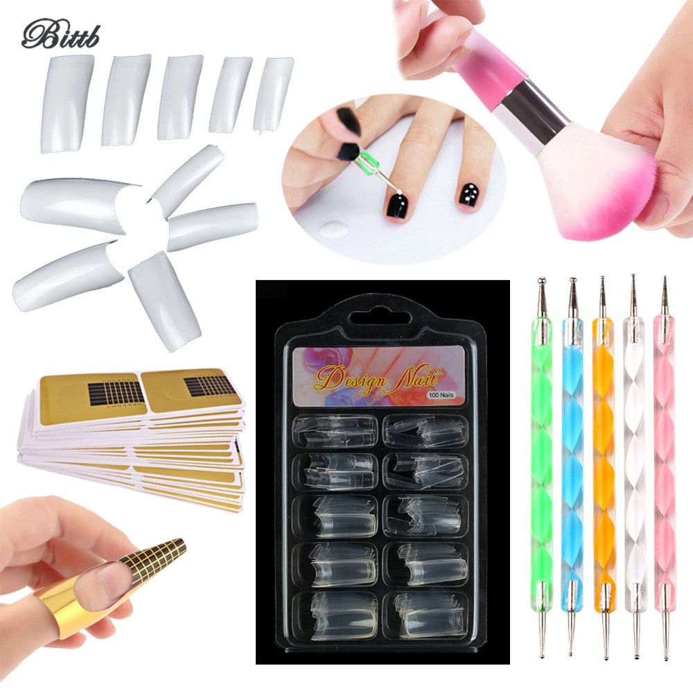 Bittb Nail Dotting Pen Set Clear French False Nails Cleaning Brush