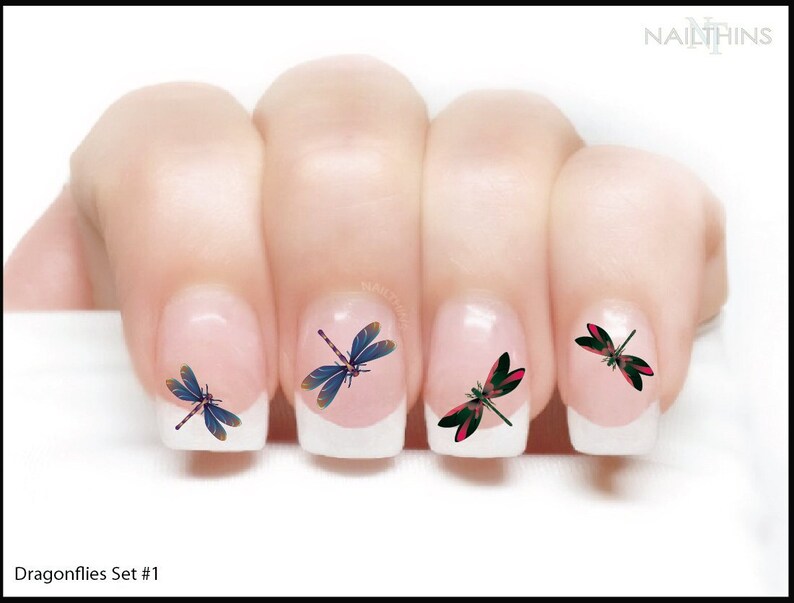 Dragonfly Nail Decal Dragonflies Set 1 Nail Wrap By Nailthins Etsy