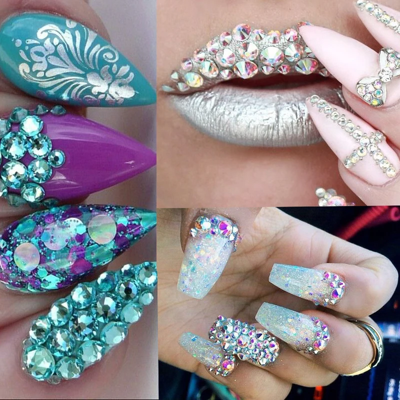 10pcs Cute Dress Design Mix Rhinestones Star Glitter Nail Art