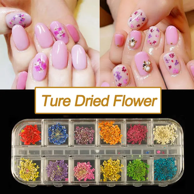 12 Color Truth Flower Nail Art Decoration 3d Dry Dried Flowers