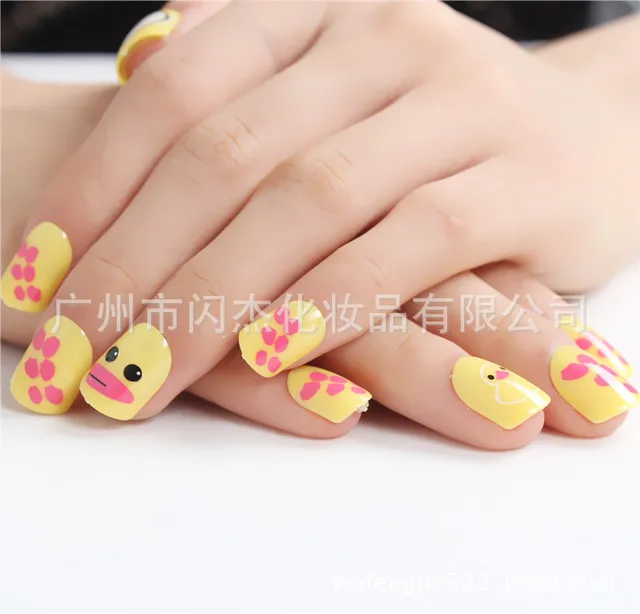 2015 New Style Yellow Duck Painted Fingernails Paste False Nail Art