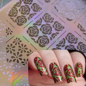 12 Tips Sheet Nail Vinyls Rose Flowers Nail Art Stencils Holo Nail