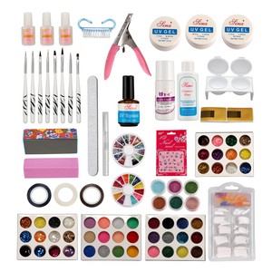 27 In 1 Nail Art Kits Brush Glue Glitter Powder Top Coat Uv Gel Kit