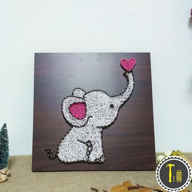 New Home Decor Funny Board Wall Art Simple Elephant String Art Kit