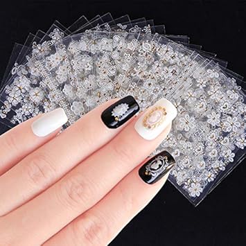 3d Embossed Nail Sticker 3d Tips White Blooming Amazon Com