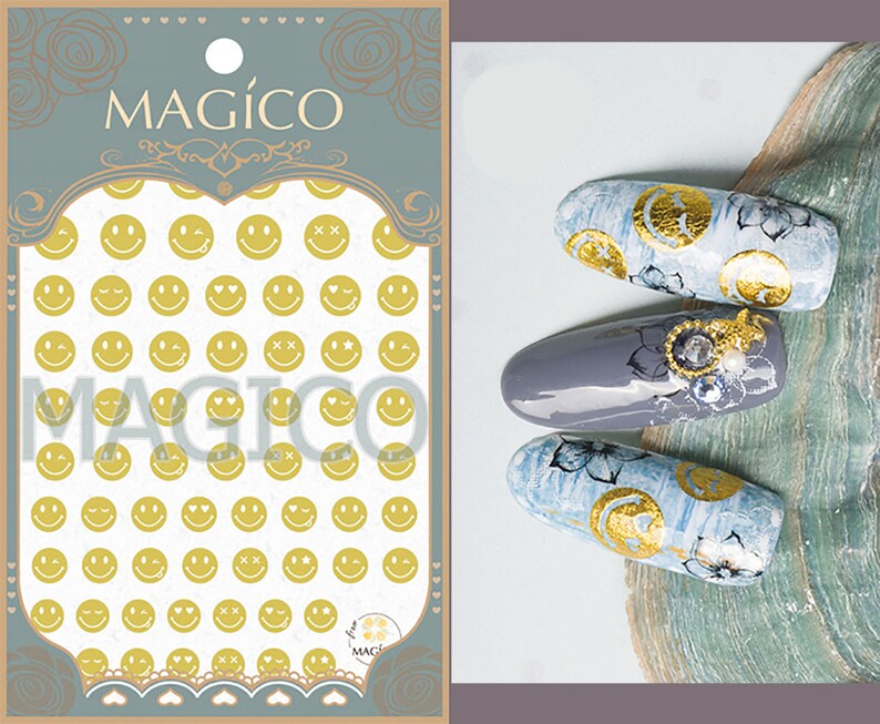 Gold Smile Face Nail Art Sticker Smile Emoji Diy Tips Etsy