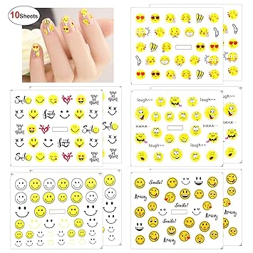 Amazon Com Konsait 10 Sheets Emoji Nail Art Nail Water Transfer