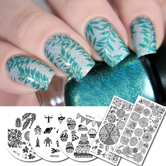 2pcs Ethnic Flower Holiday Stamping Plate Round Rectangle Nail Art