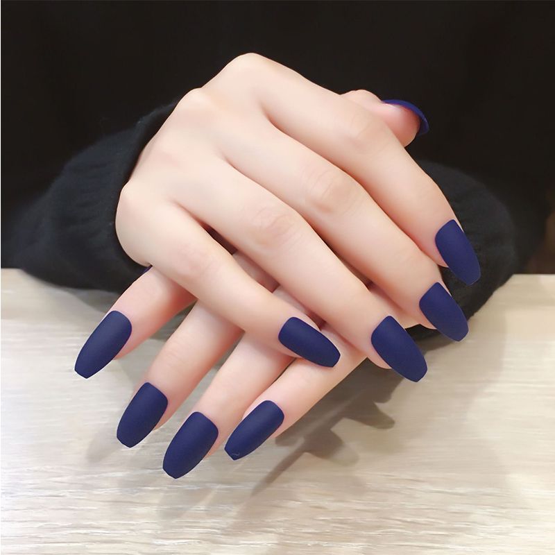 24pcs Set European Coffin False Nails Blue White Red Pre Designed Full Cover Fake Nails Finger Beauty Ballerina Nail Art Tools