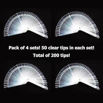 Gogoonly 200 Clear Tips Fan Shaped Nail Art Display Chart Acrylic False Tips Practice Tool 200