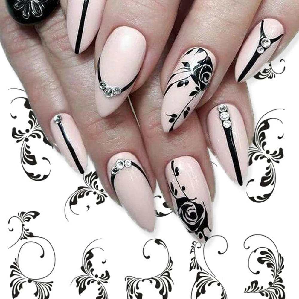 Full Beauty 1pcs Fantasy Nail Art Water Sticker Black Simple Diy